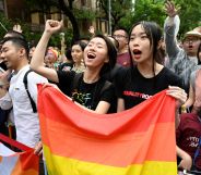 “I would rather be in the pub on my anniversary – instead I am out here in the rain,” he told PinkNews.co.uk, as he waited with his partner and a small band of supporters outside the imposing Downing St gates.