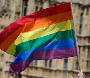 A protester holds a rainbow flag outside the Houses of Parliament in central London on June 3, 2013, as protesters gather in support of same-sex marriage (LEON NEAL/AFP/Getty Images)