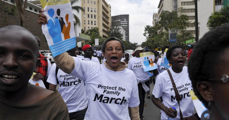 Arranged by the Evangelical Alliance of Kenya, the protest was meant to send a message to US President Barack Obama, who will visit Kenya later this month, with the group hoping to deter President Obama from speaking out about LGBT issues during his visit at the end of this month.