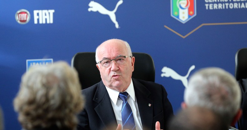 The head of the Italian football federation has been accused of making anti-gay and anti-Semitic comments.