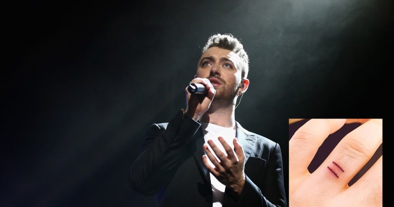 Sam Smith has showed off a new tattoo on his wedding finger, to celebrate equal marriage.
