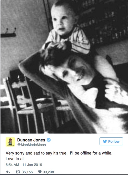 Bowie’s son Duncan Jones released a statement on social media earlier this week announcing his father’s untimely death.