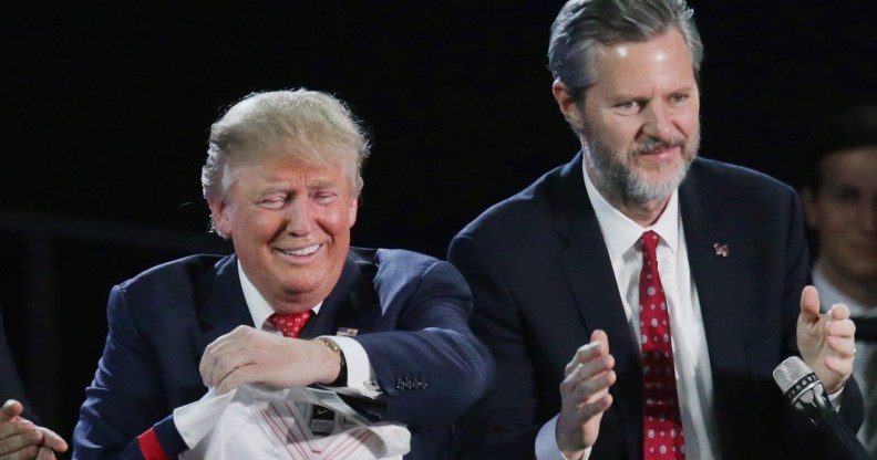 Trump failed to address this while speaking at the university – hailing Rev. Jerry Falwell Jr’s endorsement as a “great honour” and calling him “one of the most respected religious leaders in our nation”.