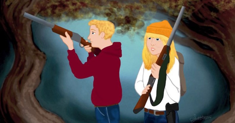They read: “Have you ever wondered what those same fairy tales might sound like if the hapless Red Riding Hoods, Hansels and Gretels had been taught about gun safety and how to use firearms?”