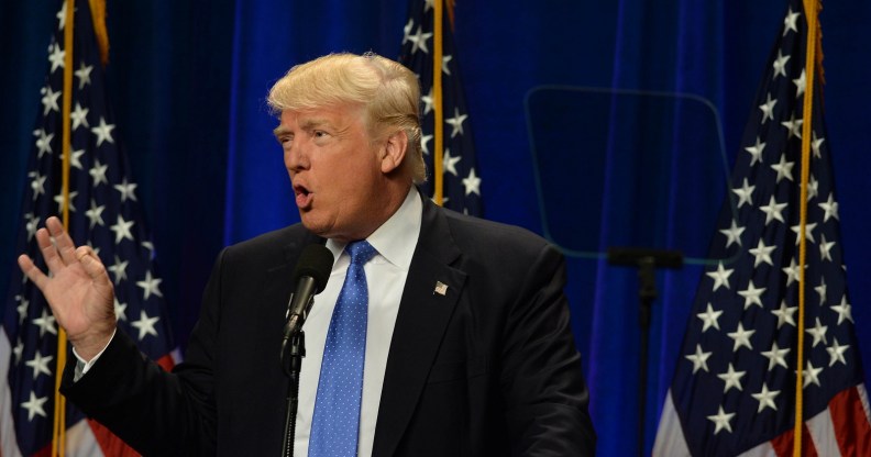 In a new speech today, Donald Trump – who opposes transgender rights, would appoint justices to repeal equal marriage and opposes federal anti-discrimination protections – claimed he is a ‘real friend’ of LGBT people and said a victory for Hillary Clinton would lead to the deaths of more gays.