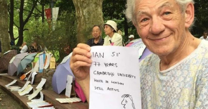 Sir Ian McKellen recently appeared at a ‘marriage market’ in Shanghai, as he posed with a handwritten advert listing his credentials.