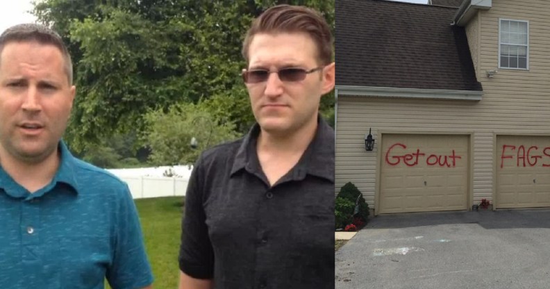 A gay couple have spoken out after their home was vandalised with the message ‘Get out fags’.