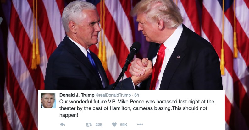President elect Donald Trump has come to Mike Pence’s defence against the cast of Hamilton.