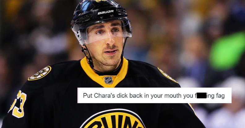 The Twitter user wrote: “Put [Bruins captain] Chara’s dick back in your mouth you fucking fag.”