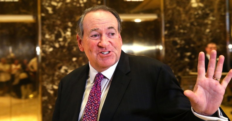 Pro-Trump Republican Mike Huckabee is under fire after cracking an anti-LGBT ‘joke’ .