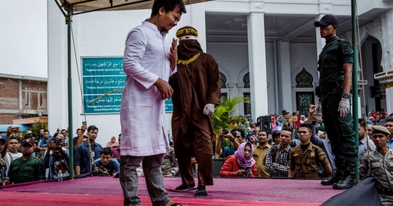 Indonesia is officially a secular country where gay sex is legal, apart from in Aceh, where Sharia law is in effect.