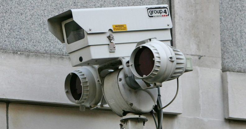 LONDON – NOVEMBER 02: A security camera hangs from a building on Novemebr 2, 2006 in London, England. Richard Thomas, the British government’s information commissioner has warned that the Britain is in danger of turning into a Big Brother society. The Surveillance Studies Network report has revealed that 20 per cent of the world’s spy cameras are in Britain. Up to 4.2 million CCTV cameras are in operation, about one for every 14 people. (Photo by Scott Barbour/Getty Images)