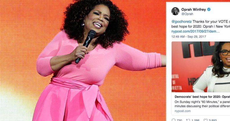 She wrote: “Thanks for your VOTE of confidence!” with a link to the article, titled ‘Democrats’ best hope for 2020: Oprah’.