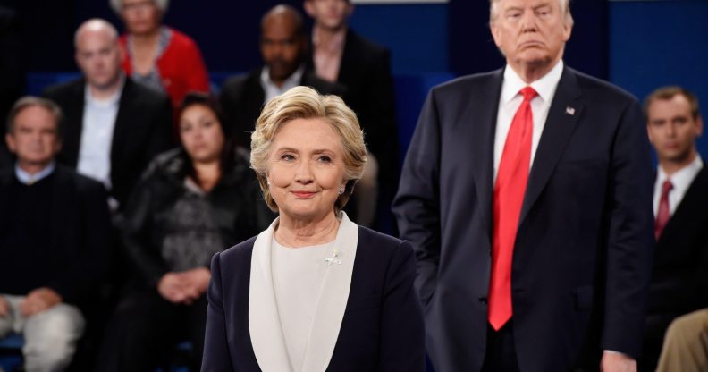 ST LOUIS, MO – OCTOBER 09: Democratic presidential nominee former Secretary of State Hillary Clinton (L) and Republican presidential nominee Donald Trump listen during the town hall debate at Washington University on October 9, 2016 in St Louis, Missouri. This is the second of three presidential debates scheduled prior to the November 8th election. (Photo by Saul Loeb-Pool/Getty Images)