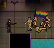 Hundreds of people assembled inside the game, repeatedly posting the slogan “We Pay No Gay”.