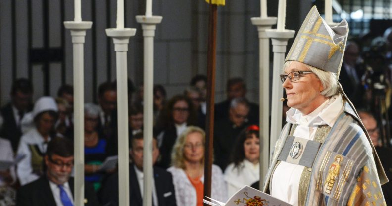 New archbishop of the Church of Sweden Antje Jackelen attends her installation mass at the Uppsala Cathedral, on June 15, 2014. The Lutheran Church of Sweden elected on October 2013 a woman as its leader for the first time in the institution’s history. AFP PHOTO / TT NEWS AGENCY / Pontus Lundahl ++ SWEDEN OUT (Photo credit should read PONTUS LUNDAHL/AFP/Getty Images)