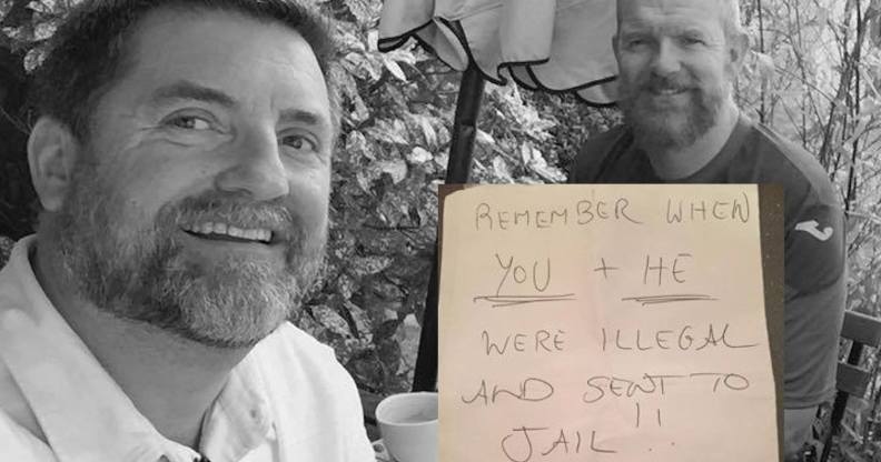 The notes suggested that gay people should be “castrated” and that the couple are unable to look after their pet dogs.