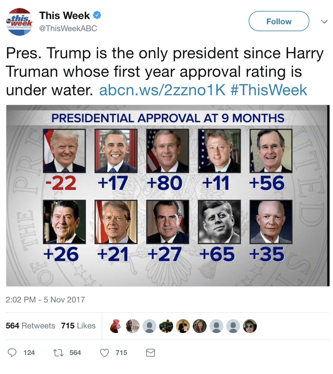 At the nine month mark he is now the most unpopular president since Harry S. Truman, the United States’ 33rd president, who entered office in 1945.
