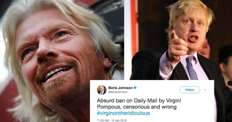 Foreign Secretary Boris Johnson has hit out at Virgin Trains, saying the decision to ban sales of the Daily Mail on board its trains is “absurd” and “pompous”.