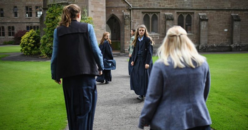 GLENALMOND, SCOTLAND – SEPTEMBER 05: School girls arrive at Glenalmond College for the first day of term on September 5, 2017 in Glenalmond, Scotland. For the first time in one hundred and seventy years, girls will be boarding in the Gothic Front Quad of Glenalmond which has been until now a purely male preserve. Girls have boarded at the school since 1991 but until today accommodated in purpose-built boarding houses away from the historic Quad. The independent boarding school founded by William Gladstone and James Hope Scott is based on the architecture of Oxford University. (Photo by Jeff J Mitchell/Getty Images)
