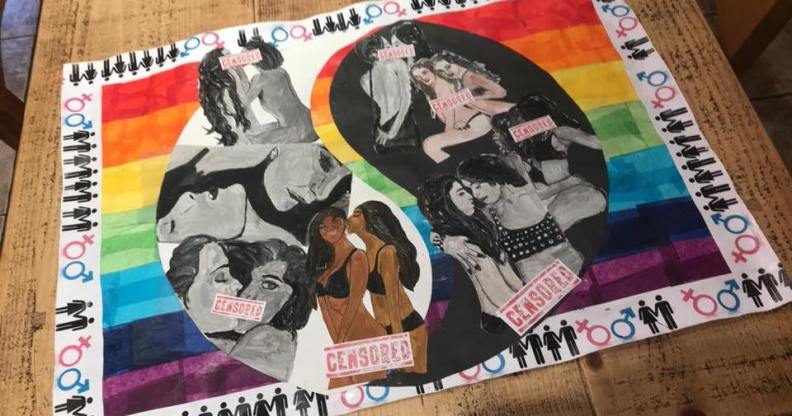 School put censor stickers on student’s school artwork because it showed lesbian lovers