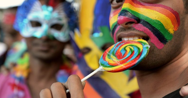 An Indian supporter of LGBT rights takes part in a Pride March in Mumbai (Photo PUNIT PARANJPE/AFP/Getty Images)
