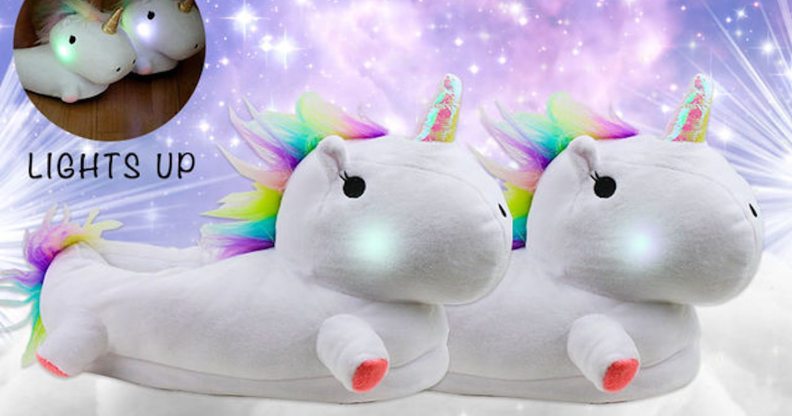 Show the one you love just how queer you are for them on February 14 with these unicorn light up slippers.