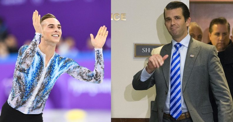 The US President’s son Donald Trump Jr has hit out at gay figure skater Adam Rippon.