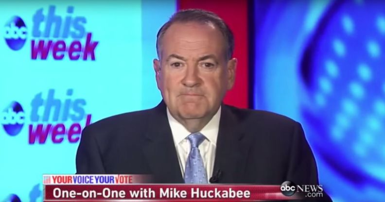 The two-time Republican presidential candidate Huckabee, has in the past hit out at same-sex marriage, comparing it to incest and polygamy, suggesting that adoption by same-sex couples is experimentation, has attacked trans people, joked about rape and murder, used gay as an insult, and various other anti-LGBT stances.