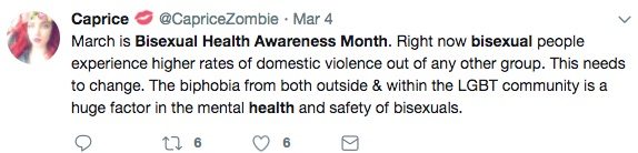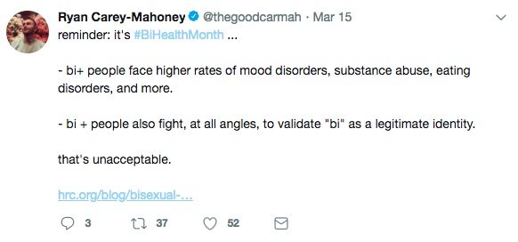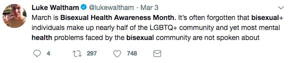 That’s why the Human Rights Campaign established bisexual health awareness month, which intends to help bisexual people in the community to understand themselves, as well as encouraging gay and lesbian people to support their bi brethren.