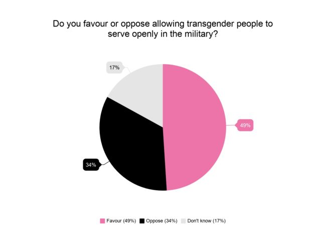 The YouGov polling asked if voters “favour or oppose allowing transgender people to serve openly in the military”.