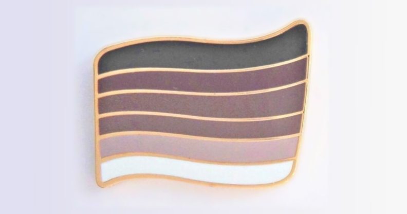 The pin was being sold via the online shopping giant in the UK for £4.50, and in contrast to the brightly-coloured rainbow flag featured several tones of brown and beige.