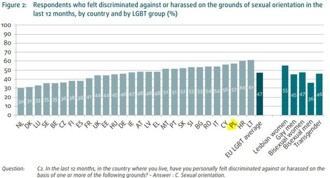 The 2014 Eurobarometer found that anti-LGBT discrimination in Poland is among the highest in Europe.