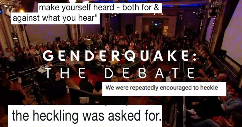 In a statement to PinkNews, Channel 4 and ITN Productions, which produced Genderquake for Channel 4, firmly denied allegations that they encouraged the heckling.