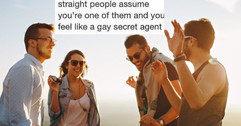 Written by Tumblr user orcasoup, it reads: “those moments when straight people assume you’re one of them and you feel like a gay secret agent.”