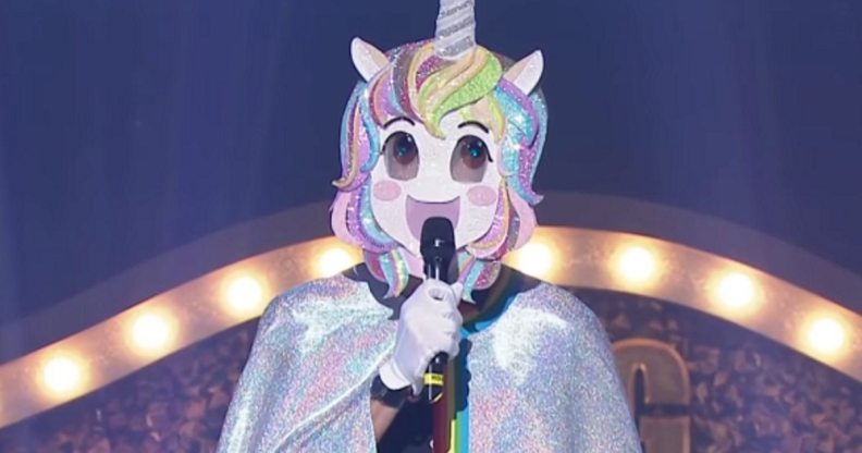 Keeping himself hidden behind a rainbow unicorn mask and a rainbow-lined cloak, the actor – who made headlines in 2017 by kissing Andrew Garfield during the Golden Globes – belted out “Tomorrow” to cheers and applause.