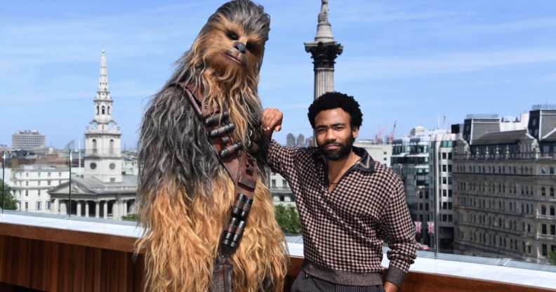 Donald Glover and Chewbacca attend Solo: A Star Wars Story photocall (Stuart C. Wilson/Getty)