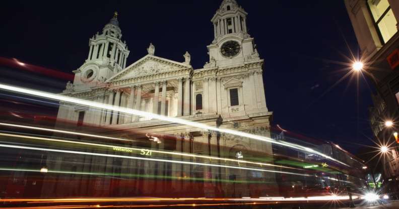 Traffic passes by St Paul’s Cathedral inside the City of London (Dan Kitwood/Getty)
