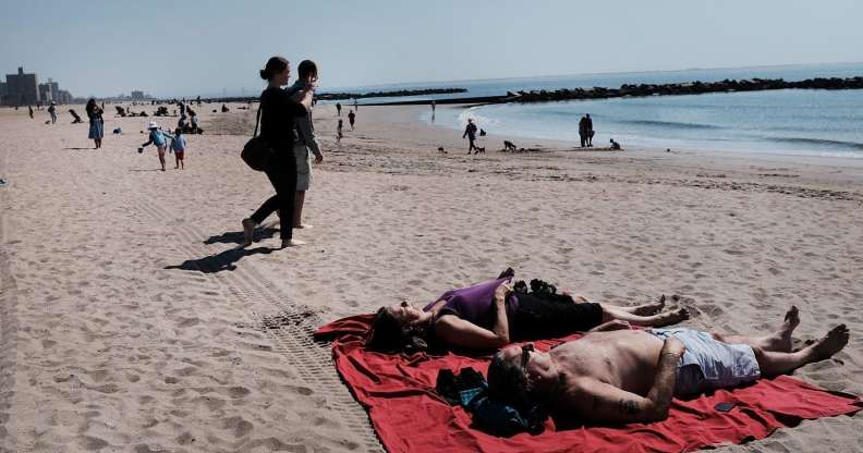 NEW YORK, NY – APRIL 14: People relax along the beach at Coney Island on a spring afternoon on April 14, 2018 in New York City. Following weeks of cold, snow and ice, New Yorkers got a taste of spring today with mild temperatures and blue skies. Cold weather is expected to return on Sunday. (Photo by Spencer Platt/Getty Images)
