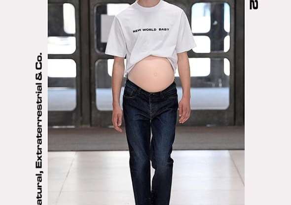 The designer posted a picture of one of the models from the show to Instagram, stating that “we’re prepared to welcome a future of male pregnancy.”
