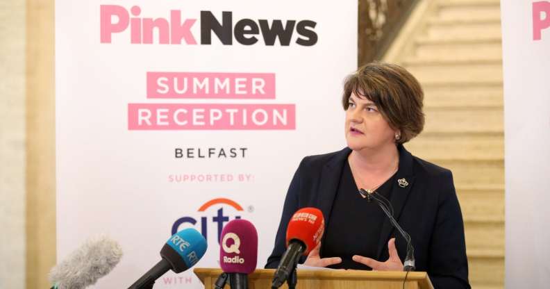 Arlene Foster insisted that her expressing regret over the Democratic Unionist Party’s stance – and her previous comments – on LGBT rights wouldn’t benefit anyone, at PinkNews’ summer reception in Belfast on June 28.