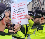 Russian police officers arrest British gay rights activist Peter Tatchell following his anti-Putin protest (MAXIM ZMEYEV/AFP/Getty)