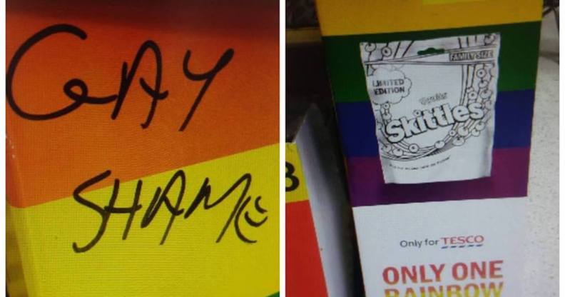 A Skittles stand in a Tesco in Lurgan, Northern Ireland, has been vandalised with homophobic graffiti.