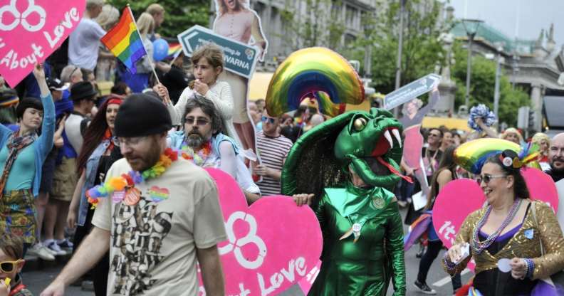 DUBLIN, IRELAND - JUNE 27: People take part in the annual Gay Pride Parade on June 27, 2015 in Dublin, Ireland. Gay marriage was declared legal across the US in a historic supreme court ruling. Same-sex marriages are now legal across the entirety of the United States. (Photo by Clodagh Kilcoyne/Getty Images)