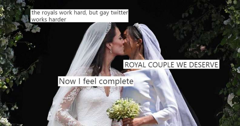 The pictures, posted by Twitter user spidertxm with the message “hi i photoshopped meghan markle and kate middleton getting married haha THATS GAY,” has attracted more than 10,000 retweets and likes.