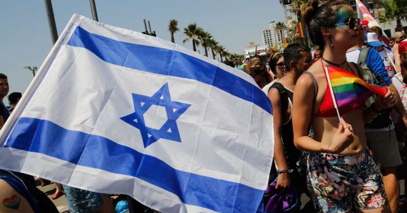 Revellers carrying an Israeli national flag celebrate along a sea side avenue in Tel Aviv during the city’s annual Gay Pride parade on June 8, 2018. – Tens of thousands of people gathered along the beach in the Israeli commercial capital Tel Aviv for the largest Gay Pride event in the Middle East. (Photo by GIL COHEN-MAGEN / AFP) (Photo credit should read GIL COHEN-MAGEN/AFP/Getty Images)