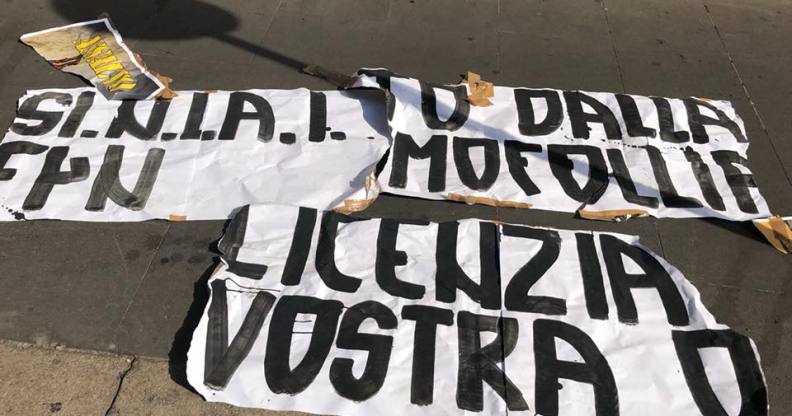 Restaurant owners found a far-right banner reading "fired by your homofolly" on Sunday morning (Locanda Rigatoni/Facebook)