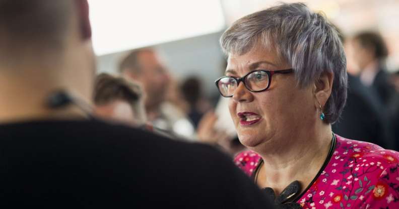 Carolyn Harris with Welsh First Minister Carwyn Jones at the PinkNews Cardiff reception in June 2018