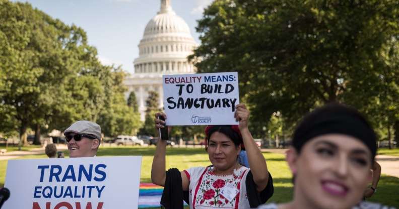 Members of the transgender community and their supporters rally for transgender equality on Capitol Hill in 2017 (Drew Angerer/Getty Images)