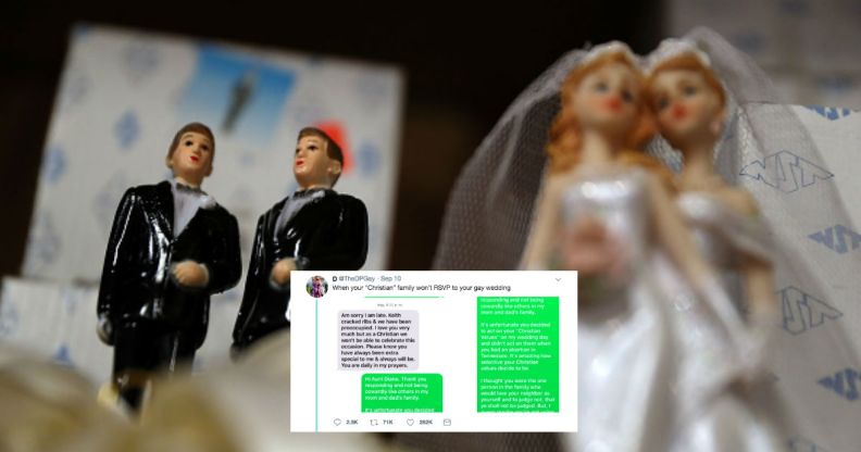 One Twitter user’s response to an aunt declining a wedding invite to his gay wedding—because of her “Christian values”—has gone viral.